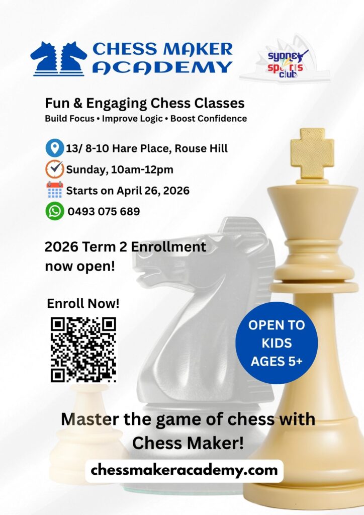 Chess Maker Academy made an impactful presence at the Kids Enrichment Expo held at the Castle Hill Cultural Centre on 15 December 2024. The event attracted a massive crowd of eager families and the Chess Maker Academy stall quickly became a hotspot for young chess enthusiasts and their parents. The academy showcased its commitment to fostering creativity and intellectual growth by hosting an engaging chess competition that brought out the competitive spirit in kids of all ages. The excitement at the stall was palpable, with parents and children expressing keen interest in the benefits of learning and playing chess. In a bid to encourage kids to pursue creative and educational activities, Chess Maker Academy awarded scholarships to winners of the chess competition, spelling bee, and other skill-based contests held during the expo. This initiative not only rewarded talent but also inspired many young minds to explore chess and other enriching hobbies further. “We believe that chess is more than just a game. It helps children develop critical thinking, focus, and problem-solving skills, all while having fun. Events like the Kids Enrichment Expo provide us with an excellent opportunity to inspire young learners and show how enjoyable learning can be,” said a representative from Chess Maker Academy. Parents were enthusiastic about the academy’s programs, recognizing chess as an activity that boosts creativity, memory, and strategic thinking. Many families expressed their interest to enrol their children in the academy’s classes on the spot, excited about the academy’s innovative teaching methods and supportive learning environment. The Chess Maker Academy team expressed gratitude for the overwhelming response and looks forward to continuing to empower the next generation of thinkers and innovators. For more information about Chess Maker Academy programs and upcoming events, visit our website or contact us directly. Together, let’s help kids unlock their full potential through creative learning! [Photo: Chess Maker Academy]